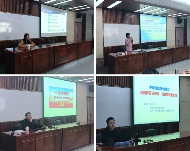 此次轮训为期一周,邀请了省委党校和省社会主义学院的一批知名专家学者教授为大家作专题辅导培训。培训内容包括十九大精神解读、国际形势变化与中国特色大国外交、中国特色政党制度发展与人民政协协商民主、新时代政协委员履职能力提升、中华传统文化讲座、宏观经济形势及走向新常态策略等课程,并赴桐庐开展了“剿灭劣V类水工作及美丽乡村建设”主题现场教学活动。 举办此次委员轮训班,是今年市政协全局工作中的一项重要内容,市政协领导高度重视、准备充分,教学形式多样、内容丰富,学员学风端正、遵章守纪,取得了较好的学习效果,得到市政协领导和省社会主义学院领导高度肯定。 | ||