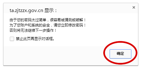 三、修改密码 若初次使用,系统将会提示你修改密码,请按照提示点击确认执行修改密码及完善个人信息操作。(如下图)