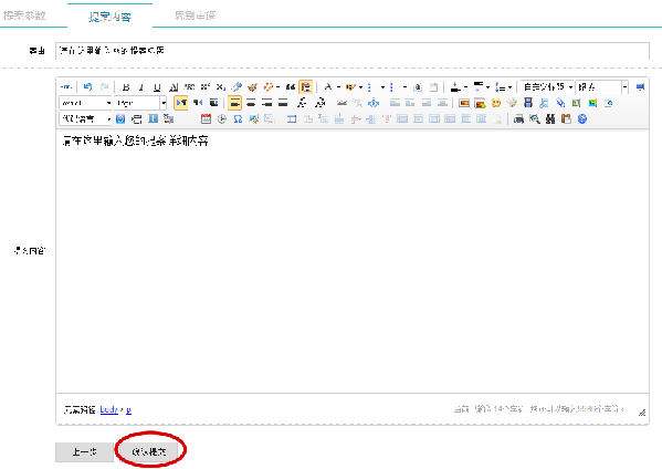 2、再次点击功左侧导航区的【添加提案】按钮,进入提案提交界面。(如下图) 3、进入提案提交界面后,请填选提案参数,若不慎漏填或漏选相关参数,系统将会作出提示。(如下图:) 提案参数栏目设置说明: [领衔人]:领衔人默认为委员的账户信息,信息有误的请先在界面顶部右侧的【账户资料】中修改,再行添加提案操作。 [附议人]:点击本栏最右侧的【添加附议人】按钮,将弹出“查询附议人”窗口,输入附议人姓名,点击查询即可显示附议人信息,点击对应姓名即可添加,系统会自动将附议人信息显示到本栏中。在本栏中点击对应姓名即可删除。 ?[建议承办单位]:本项为非必选项,操作方式与[附议人]相同。点击本栏最右侧的【添加单位】按钮,将弹出“查询单位”窗口,可通过选择“所属系统”或自行输入单位名称关键词(如:环保等),点击查询即可显示单位信息,点击对应单位即可添加,系统会自动将单位信息显示到本栏中。在本栏中点击对应单位名称即可删除 4、提案参数设置完成后,点击【下一步】按钮或【提案内容】选项开始提案内容的输入,输入案由和提案内容后点击【提交提案】按钮即可完成。(如下图) 六、查阅/修改提案 点击左侧导航的【我的提案】按钮,进入个人提案列表界面,查看提案审查情况及办理流程。点击【编辑管理】按钮进入查看审阅记录,在提案审查立案前可修改提案内容(操作方式与添加提案相同)。(如下图) 七、评价提案 提案办理结束后,委员对自己领衔提案的办理答复作出评价。 操作方式: 1、点击左侧导航【我的提案】选项,进入我的提案列表界面,已办理完成的提案后将显示【评价答复】按钮。(如下图) 2、点击【评价答复】按钮,进入[答复/评价]界面,可以查看单位答复、委员评价内容,选择右上角的菜单可分单位查看答复。首次评价请点击【编辑评价】选项,填写协商方式(可多选)、办理态度、办理结果等评价项目,对办理结果[基本满意]或[不满意]的请填写办理意见栏,按下图项目操作[确认提交]。(如下图) 注意:若对办理结果选择为[不满意],系统将自动进入二次办理流程。 八、查看公开提案 点击左侧导航栏【公开提案】选项,即可查看系统中公开的其他委员提案,提案审查立案前不公开。 九、搜索提案 点击左侧导航栏【搜索提案】选项,即可按关键词或对应参数搜索提案。 十、注意事项 1、委员在提案管理系统中提交提案后,不再提交书面提案。 2、委员提案若要联名提交的,须由发起人事先协商确定后,在添加提案操作中添加附议人。闭会期间提交提案的,委员应及时与市政协提案委联系。 3、用户提交提案后,要经常关注提案的办理情况,并及时填写提案办理反馈意见(评价意见),二次办理的提案也要及时作出评价。 4、本操作说明仅作简单介绍,具体可据情符合系统要求进行操作。 5、市政协提案管理系统刚刚升级,还需进一步提升完善,委员在操作中碰到问题或有更好的意见建议,请与市政协提案委联系,电话:88510259。 |
